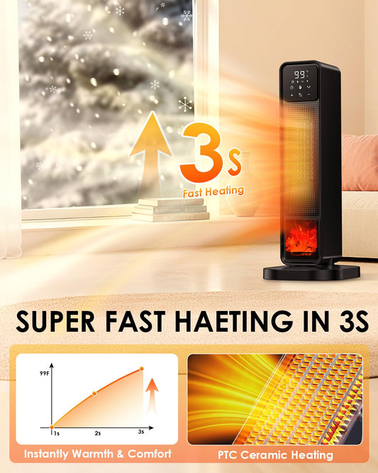 25" Space Heaters for Indoor Use, 1500W Electric Heaters with Remote, Tower Heater with Overheat & Tip-Over Protection, Quiet, Fast and Safe Heating for Room Bedroom Office Home