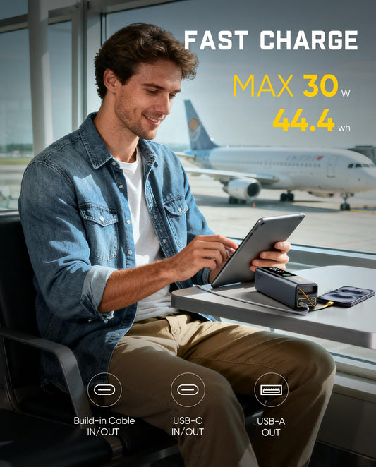 Portable Jump Starter, 12000mAh Power Bank, 12V Safe Lithium Jump Box with Smart SenseClamp, Retractable Charging Cable, Battery Booster for 7.0L Gas and 5.0L Diesel Engines